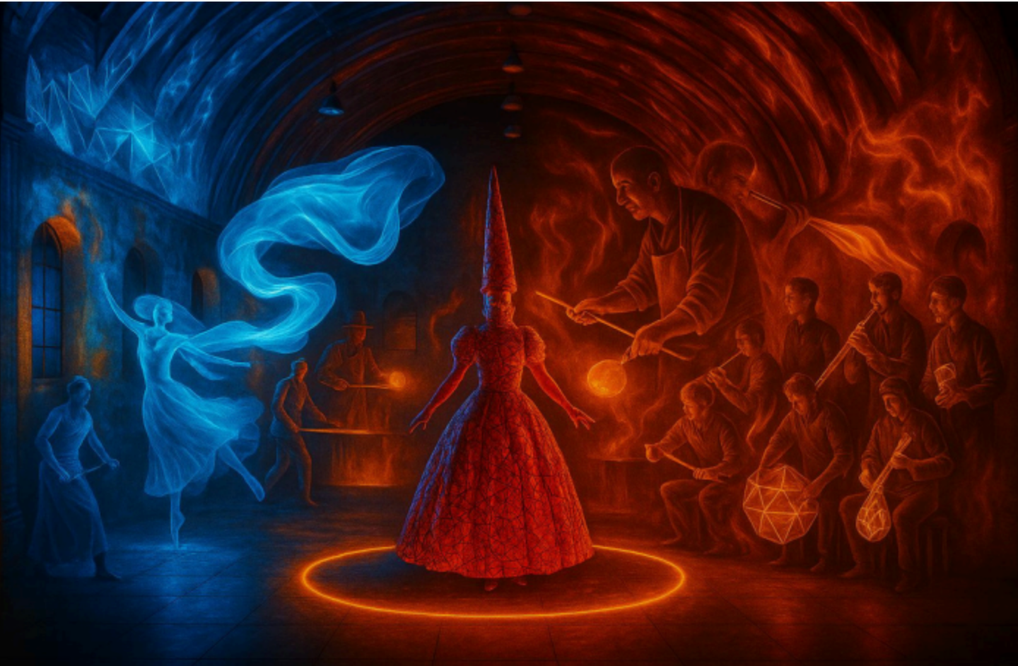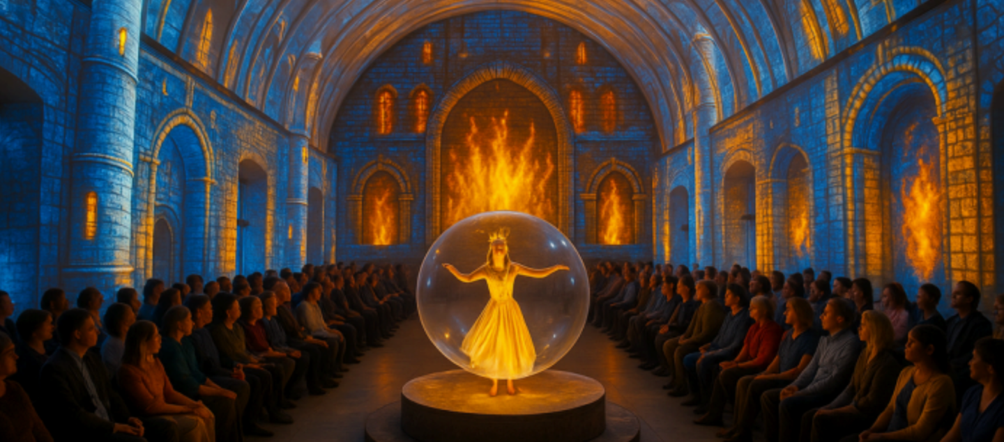 Sous ses voûtes, faisceaux lumineux, ballets aériens et tableaux spectaculaires composent une fresque vivante accessible à tous les publics. Des figures poétiques apparaissent et disparaissent, guident le regard et nourrissent l’imaginaire des petits comme des grands, comme attirées par l’éclat du cristal.